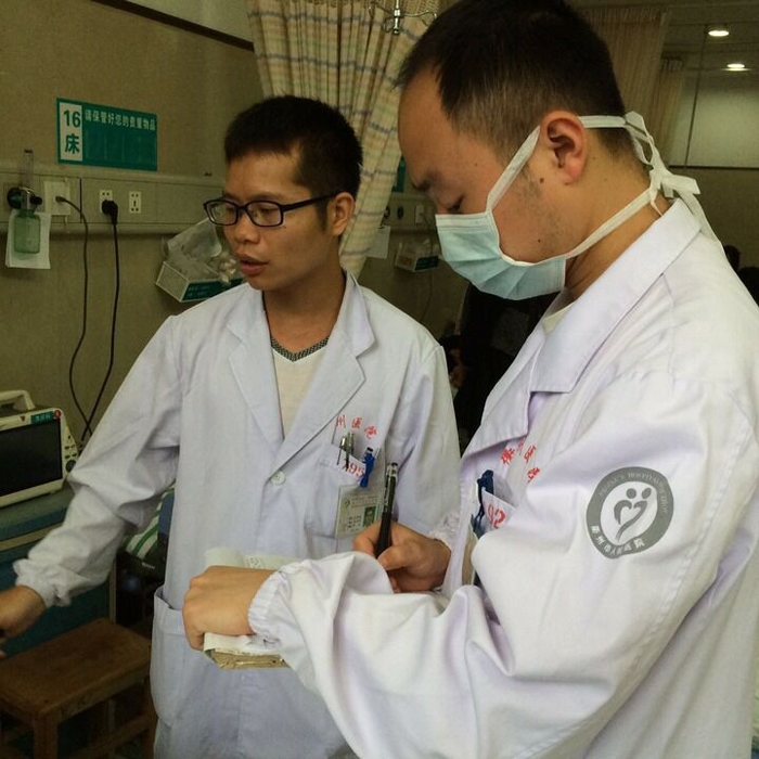 ??? “來急診室就醫(yī)的病人家屬,他們都很著急,會(huì)圍著問長(zhǎng)問短”。江偉鋒說,他在急診室工作了三年多,節(jié)假日他們科室不僅是正常排班的,而且還是最忙的時(shí)候。有些科室節(jié)假日放假,病人就轉(zhuǎn)到急診室,另外節(jié)日出游也增加了很多假期事故。有一次,急診留觀室27個(gè)床位全住滿外,還另外加了18個(gè)擔(dān)架,醫(yī)生巡房都是側(cè)著身子走的。