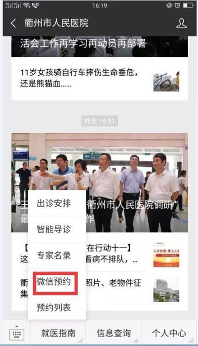 ??? 關(guān)注醫(yī)院官方微信號,點擊就醫(yī)指南,選擇微信預(yù)約,輕輕松松幾個步驟,周先生就成功預(yù)約了口腔科。