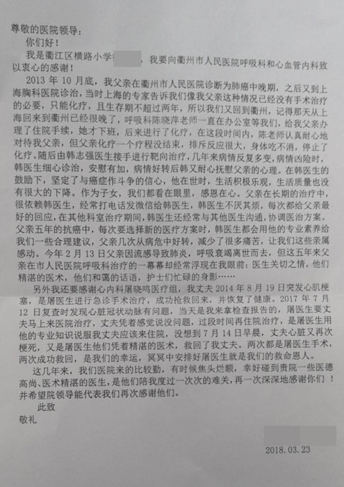 父親患癌治療的5年,醫(yī)生的關切讓他感恩在心 小學教師寫近千字感謝信
