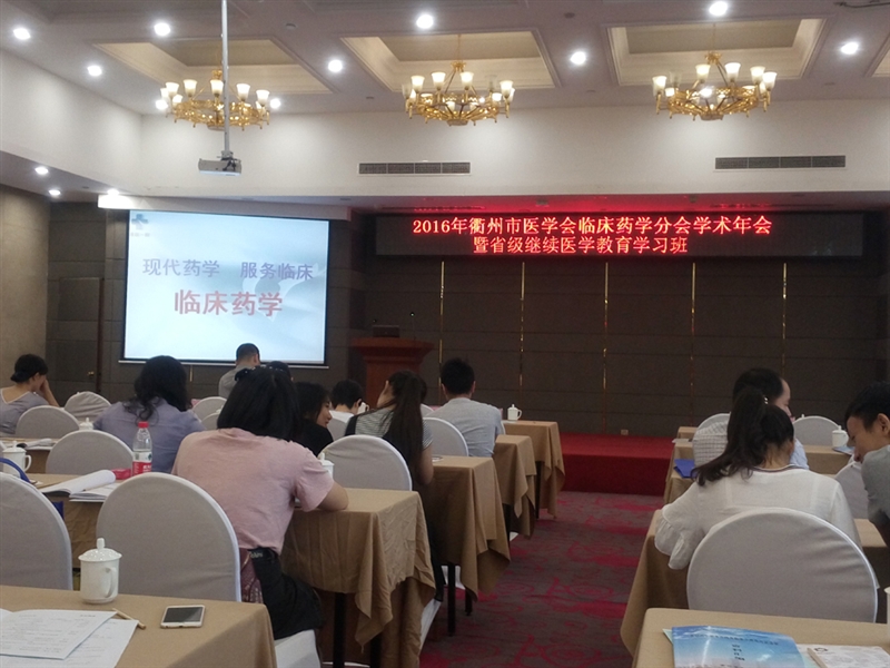 ??? 7月8日-11日衢州市醫(yī)學(xué)會(huì)臨床藥學(xué)分會(huì)學(xué)術(shù)年會(huì)暨省級(jí)繼續(xù)醫(yī)學(xué)教育項(xiàng)目《基層藥學(xué)服務(wù)實(shí)踐及臨床合理用藥新進(jìn)展》培訓(xùn)班在柏麗大酒店舉行。來自全市的藥學(xué)工作同仁共100余人參加了培訓(xùn)班。