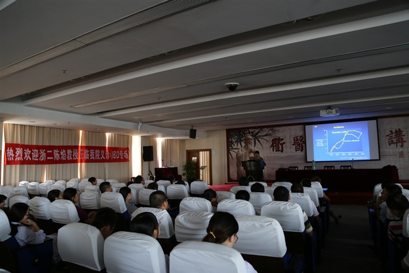 ??? 7月1日下午,在我院五樓學(xué)術(shù)報告廳,本次列車的“列車長”——浙江大學(xué)醫(yī)學(xué)院附屬第二醫(yī)院消化內(nèi)科陳焰主任,受到了醫(yī)護(hù)人員、IBD病人及家屬的熱列歡迎。