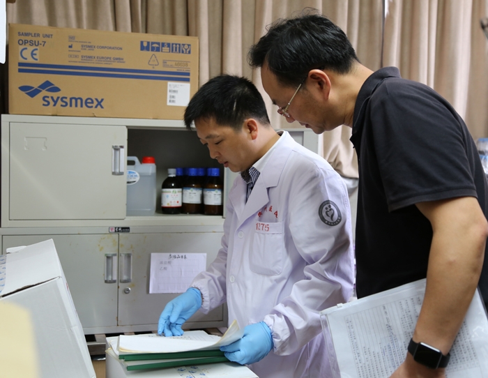 督察組工作人員查看我院安全生產(chǎn)臺賬資料