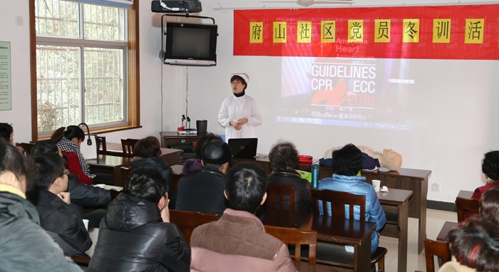 ??? 1月15日下午,我院基層衛(wèi)生指導(dǎo)科組織醫(yī)務(wù)人員為府山社區(qū)的黨員干部們進(jìn)行急救及意外事件防范知識(shí)培訓(xùn)。