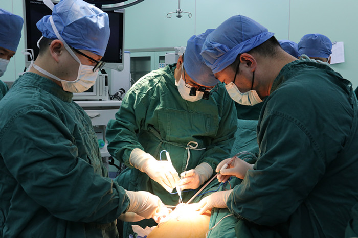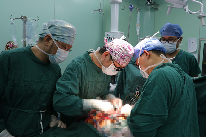 1月14日上午,王玨協(xié)同心胸外科周珉主任,帶領(lǐng)手術(shù)團(tuán)隊為梁先生行全麻下 “補心”手術(shù)。