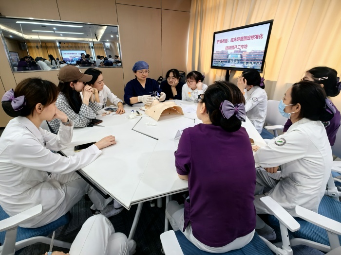 工作坊采用“理論講解+分組練習+實操考核”的模式,緊扣臨床實際需求,深入解析規(guī)范固定對保障導管穩(wěn)定安全、提升治療效果的關鍵意義,強化醫(yī)護人員的風險防范意識。同時,現(xiàn)場演示常見導管固定方法、標準流程及注意事項。培訓中,資深護士還分享了實用技巧,形成“互學互鑒、共同提升”的良好氛圍。