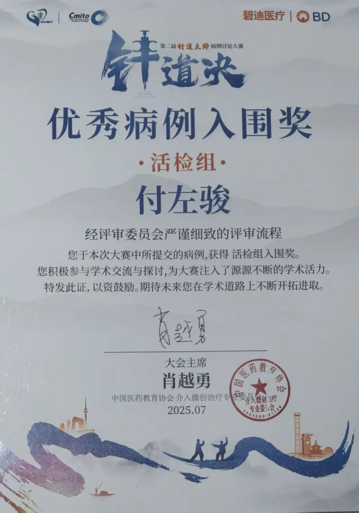 浙江唯一!超聲科青年醫(yī)師付左駿獲全國病例競賽獎(jiǎng)