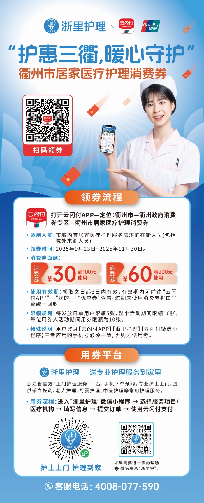 9月23日-11月30日,衢州市居家醫(yī)療護理可以領消費券啦~有需求的市民朋友千萬不要錯過!