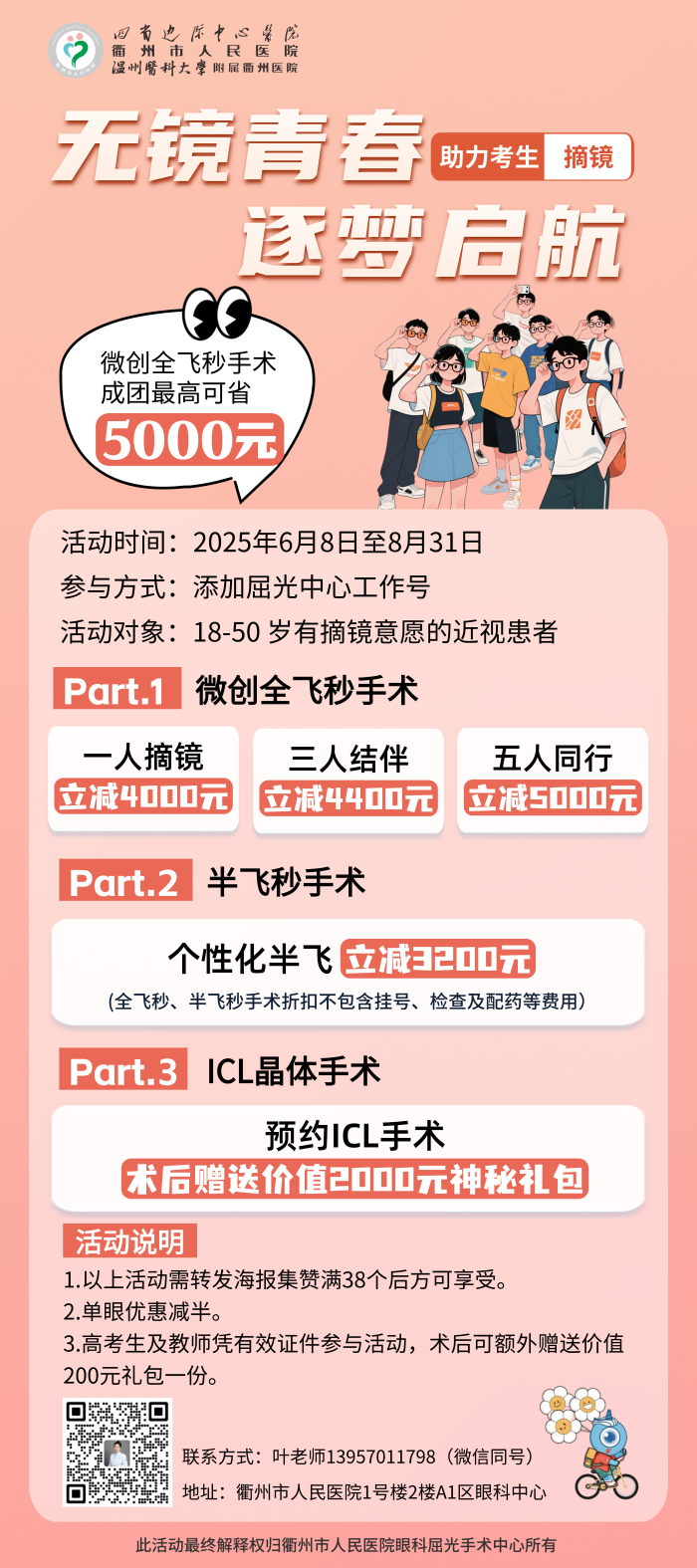 近視的你,是時(shí)候,為近視畫一個(gè)完美的句號(hào)。我院推出暑期摘鏡活動(dòng),為廣大考生們量身定制清晰未來!